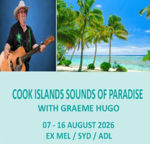 You are invited to join Graeme Hugo for an unforgettable Cook Islands holiday, combining Graeme performing all your favourite songs, with authentic island culture and breathtaking experiences. From the electrifying Ariki Night Fire Show and vibrant Punanga Nui Market to spine-tingling church singing, lagoon cruises, lei-making workshop and tantalising dinners at local restaurants, every day offers a new highlight. With optional upgrades like the stunning Aitutaki Day Tour, plus farewell celebrations including crab racing and a progressive dinner with locals, this tour blends music, adventure, and hospitality into one seamless tropical escape. Discover paradise with Graeme Hugo – where rhythm, culture and island magic come together. Space is limited. Book online or call us for a booking form.
